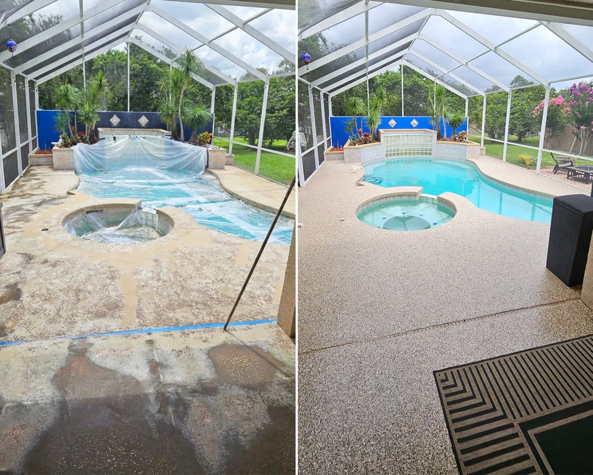 Cool Concepts did an awesome job on our lanai floor. It went from an ugly, patchwork of grey concrete to a bright, beautiful, glossy, “statement” floor. Jessie and his partner did a great job!